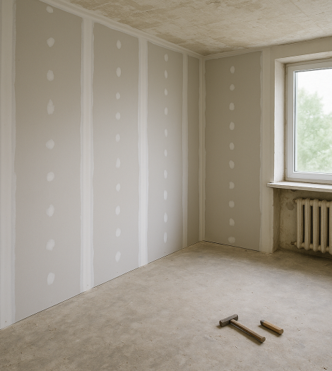 Panneaux isolants thermiques directement collés sur les murs intérieurs. Rapide et économique, parfait pour les logements avec peu de pertes thermiques.